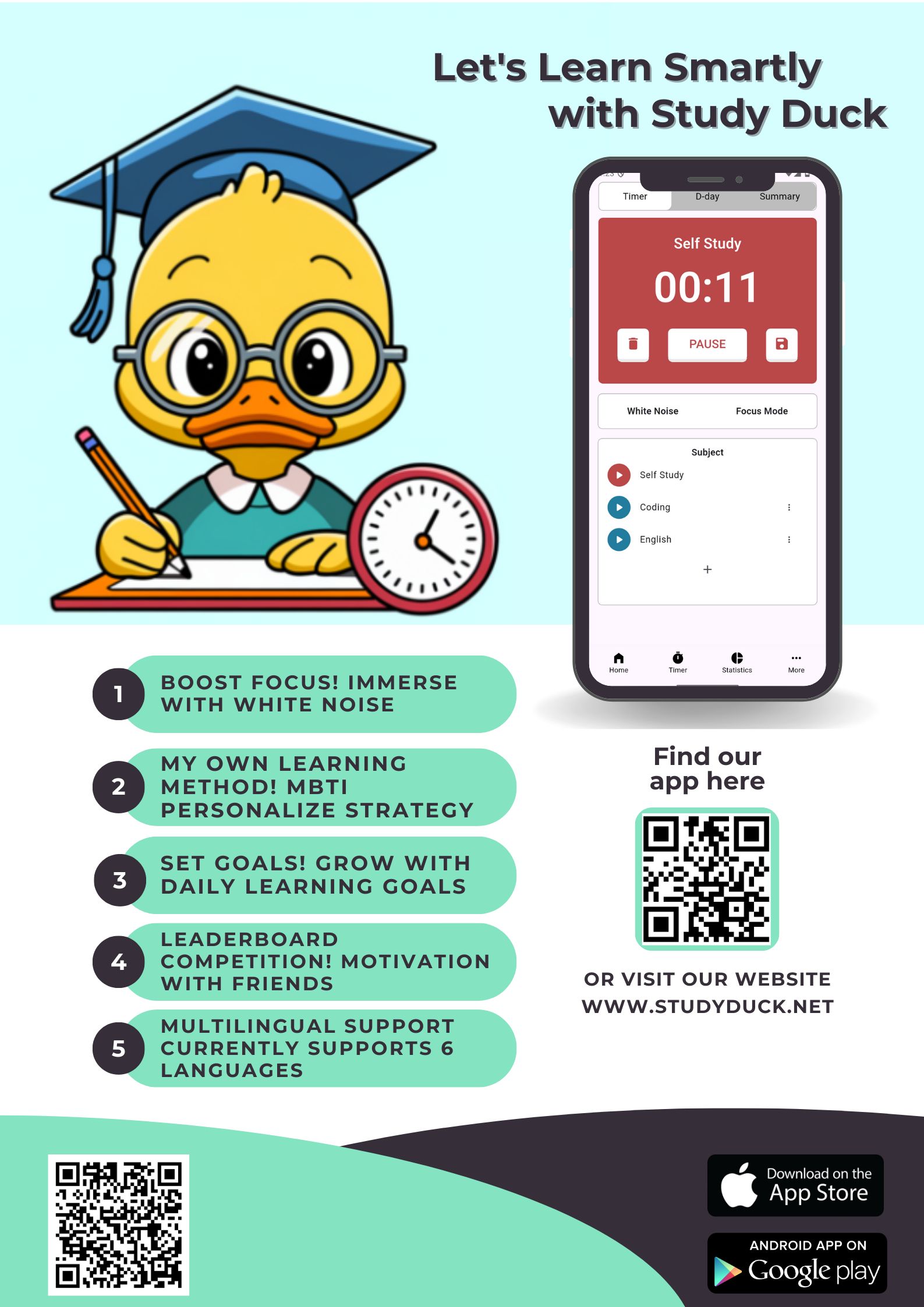 "Efficient learning tailored to your learning style, with Study Duck!"